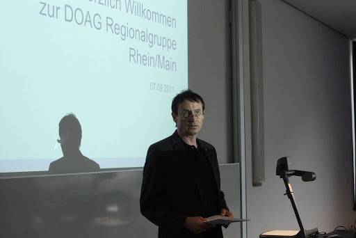 Im Rahmen des Regionaltreffens Rhein/Main der DOAG im Hörsaalzentrum auf unserem Campus Westend hielten Alexander Elsas und Dr. Harry W. Trummer einen Vortrag über "Apex & iPhone - Entwicklung mobiler Webanwendungen und Apps". Dieter Wambach erörterte in seinem Referat dann anschaulich Einsatz und Nutzen von Primavera.